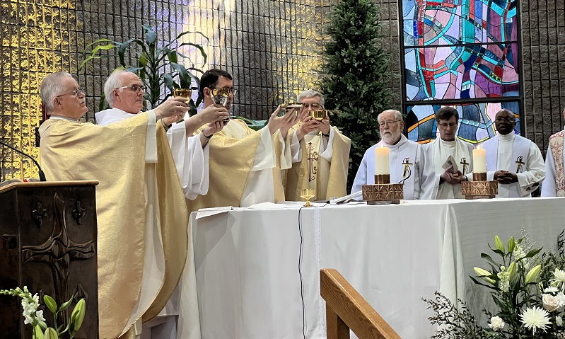 Samedi le 20 avril dernier, la communauté chrétienne de Sacré-Cœur, avec des Oblats de notre province, ainsi que de la province Lacombe et de l’Assomption, se réunissaient pour la messe de 16 h 30, et un repas de fête soulignant les 25 ans d’ordination du Père Andrzej. La célébration était présidée par le Père Andrzej et l’homélie par le Père Eugene King. Sœur Marie-Pierre Delorme avec sa chorale animait le chant. Le Père Andrzej a reçu de très beaux témoignages de l’assemblée.